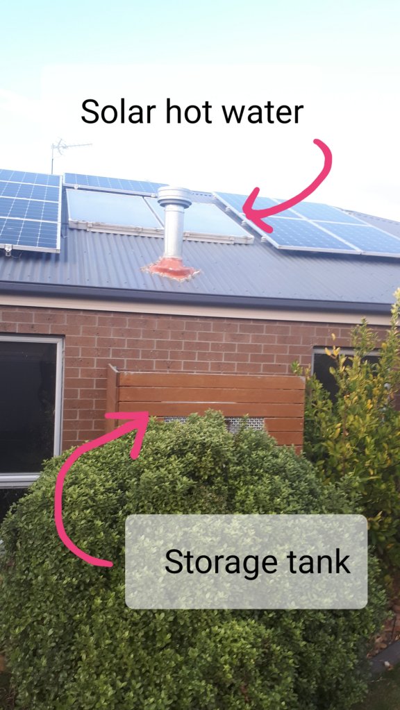 Hot water accounts for around 21% of a homes energy use in Australia. We’re lucky to have solar powered hot water (albeit the gas booster) meaning, for a majority of the time it’s heated by renewables. Our solar hot water system works by using the sun to heat water as it passes through collectors on the roof. The water then flows into an insulated storage tank for later use. The tank is fitted with a gas booster for days when the sun isn’t strong enough to warm it completely.