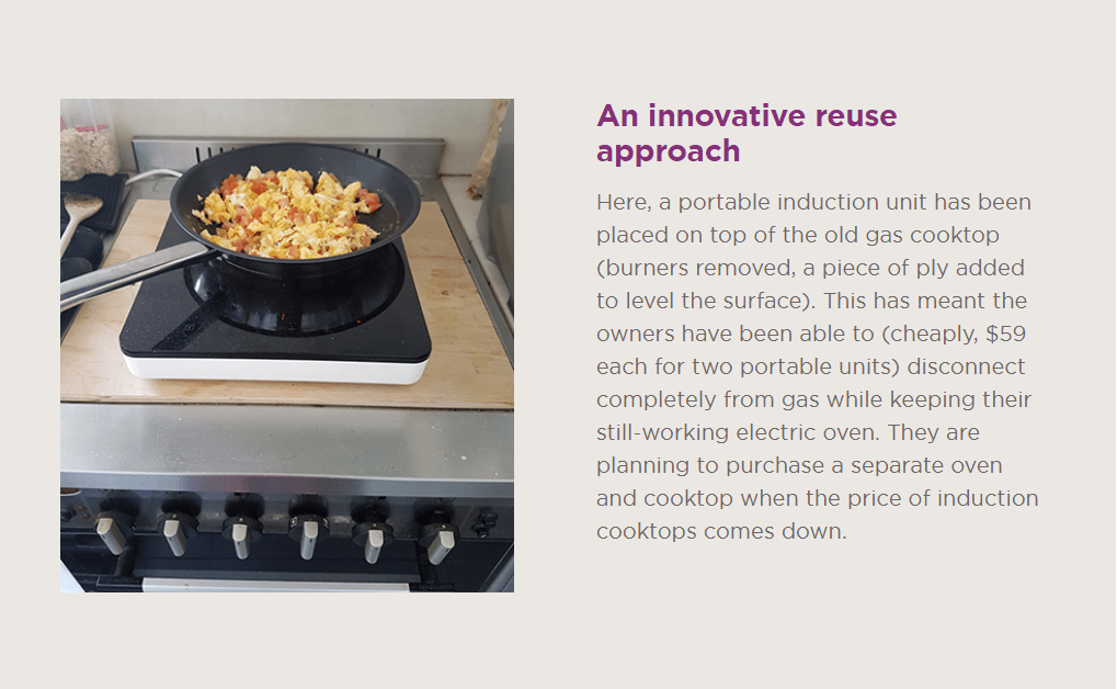 - Another option is to minimise our use of the gas stovetop by using the microwave more and consider getting a portable induction cooktop.