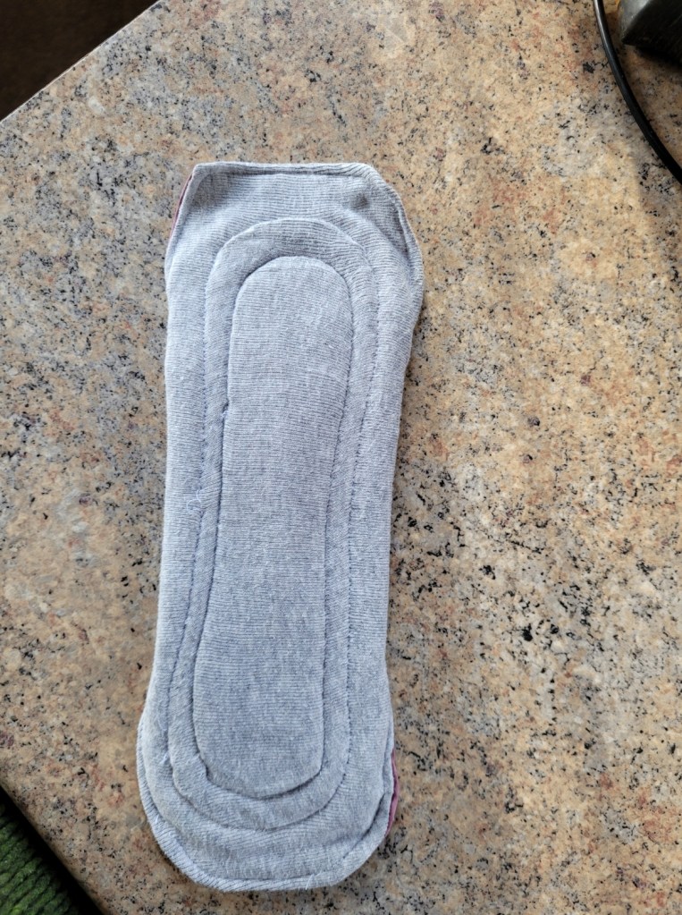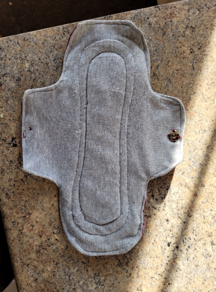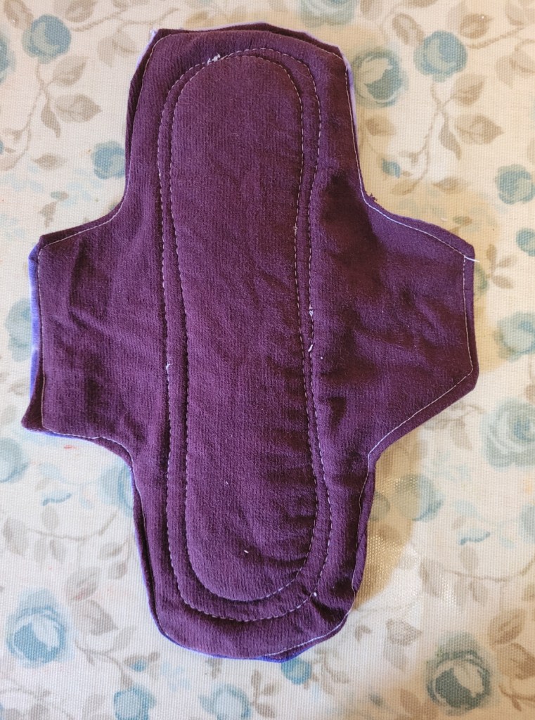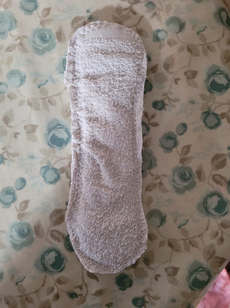 I started looking for a natural fibre reusable pad but was turned off by the cost. Instead, I thought, why not make my own – how hard can it be! I found an excellent FREE tutorial and pattern at Luna Wolf. Victoria’s instructions are foolproof, and to show your gratitude, all she asks is for you to buy her a cuppa via a small PayPal donation. Such a lovely idea!